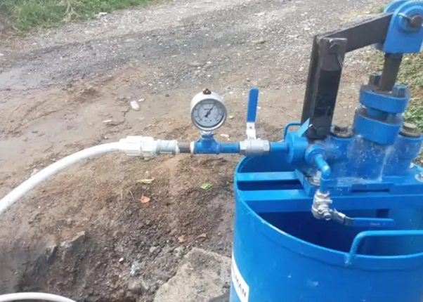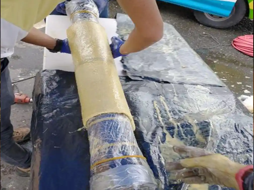 La aplicación es muy sencilla, una vez localizado el punto correcto en el que se encuentra el problema, se coloca el trozo de fibra de vidrio impregnado de resina Epoxi en un dispositivo hinchable adaptado al diámetro del tubo (packer).